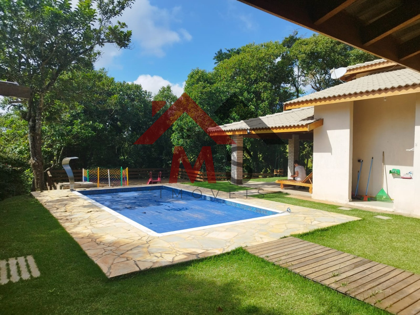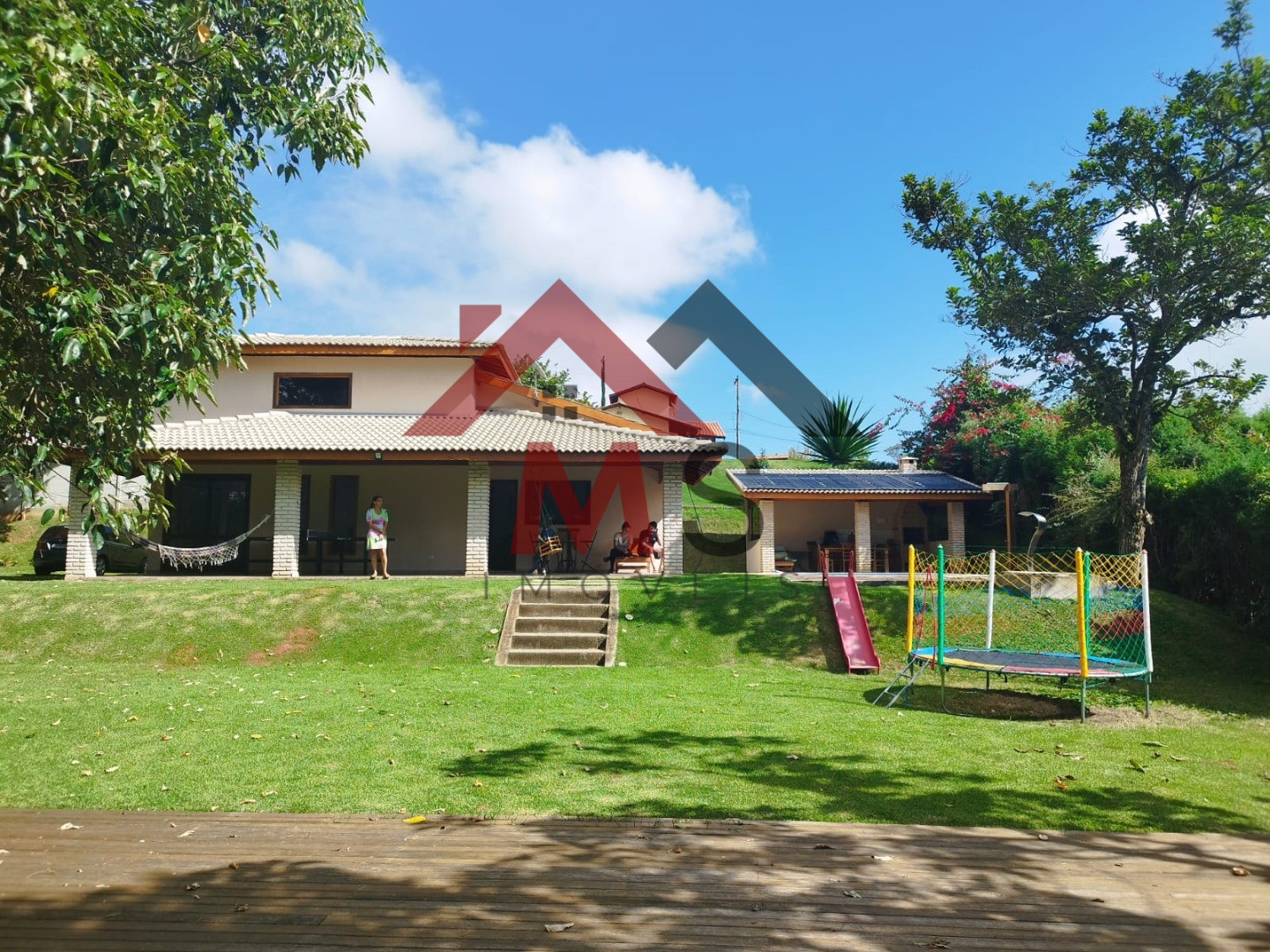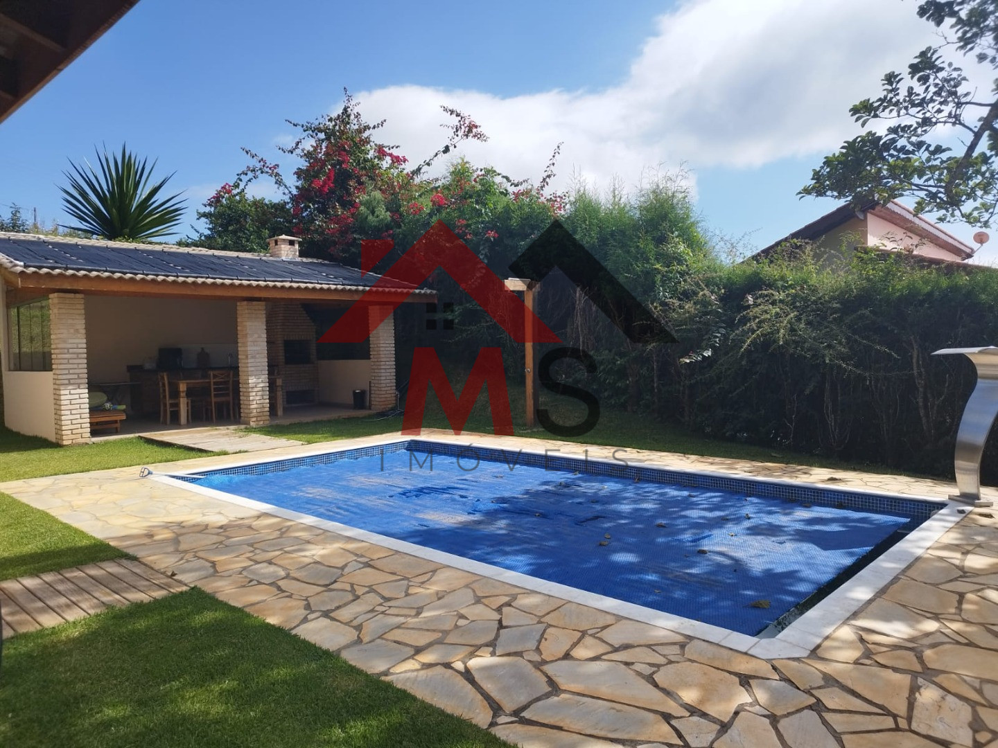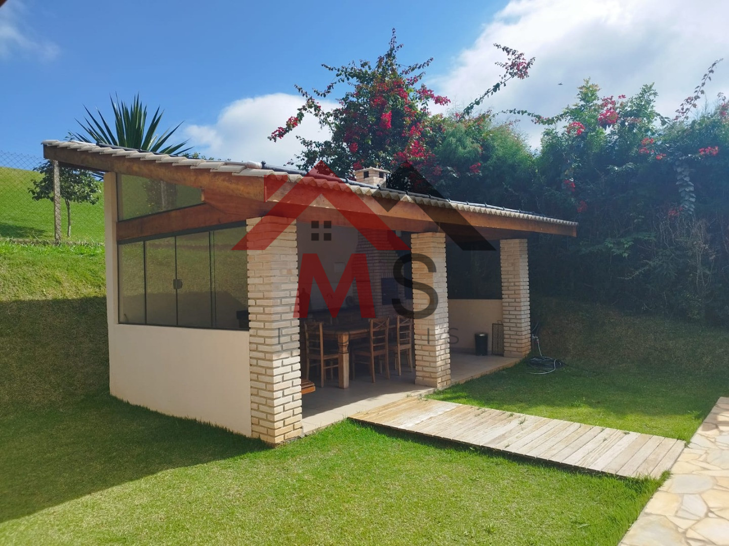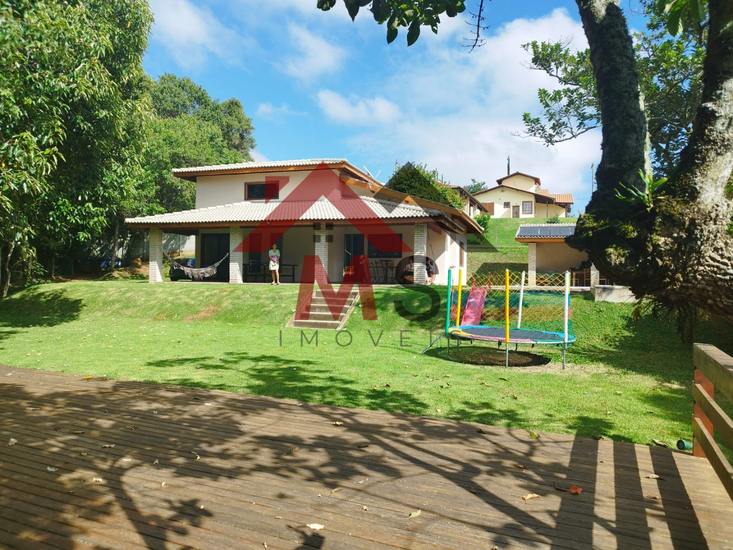 Á 1 hora de São Paulo condomínio de alto padrão segurança 24 horas. Sede com aproximadamente 153 m², de Área construída sendo sala em 02 ambientes com pé direito alto, cozinha americana planejada, área de serviço, 03 confortáveis dormitórios sendo 01 suíte e espaçosa varanda. Espaço gourmet churrasqueira, piscina de vinil aquecida e cascada com deck em pedra mineira, amplo deck em madeira. Lindo terreno com 1.287,00 m² todo alambrado, gramado, belíssimo bosque. Chácara em Condomínio Fechado com segurança motorizada 24 horas, portaria, coleta de lixo, água encanada da Sabesp, campo de futebol e vôlei, lago para pesca, trilhas para caminhada.
