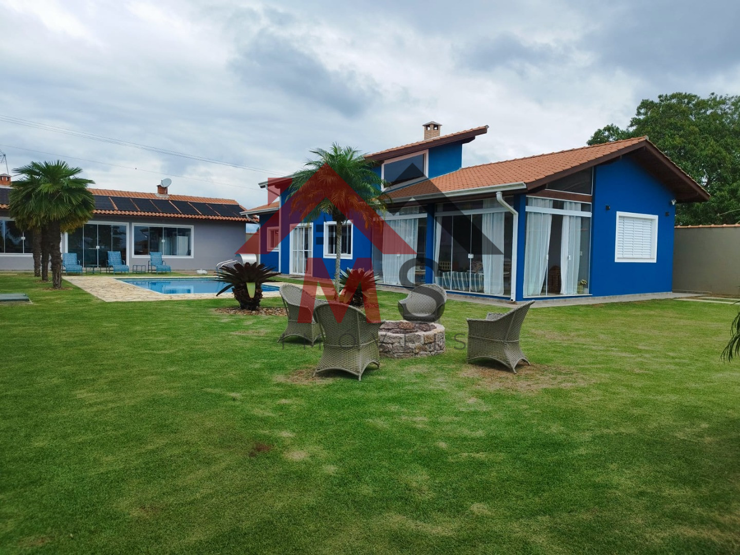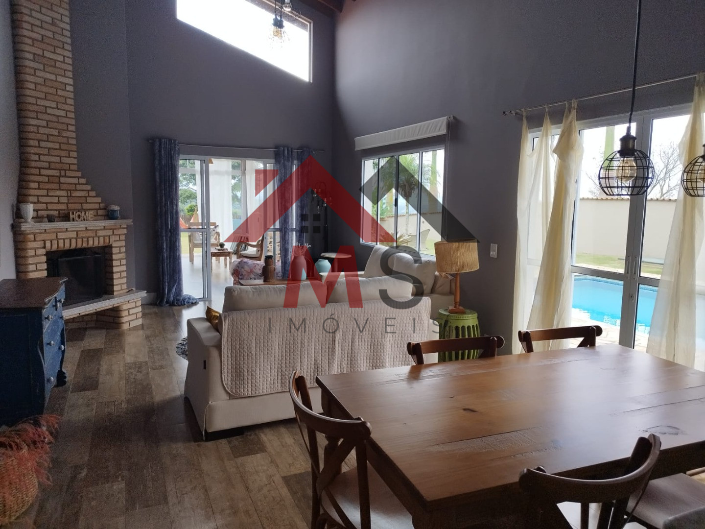 IBIÚNA, chácara espetacular com 1.000 M2 de A/T todo murado e aproximadamente com 220 M2 A/C, construção de fino trato, SEDE com fino acabamento, sala 3 ambientes com pé direito duplo ( opção para mezanino) lareira, cozinha americana, conceito aberto, despensa, 04 ótimos dormitórios ( 01 suíte) wc social, espaço gourmet completo com trio mineiro ( fogão a lenha, forno de pizza e churrasqueira a carvão) lavanderia ( área de serviço com wc pra apoio à área externa, piscina 05 x 10,0 de vinil aquecida, belo deck em pedra mineira, pomar e maravilhoso paisagismo tropical.