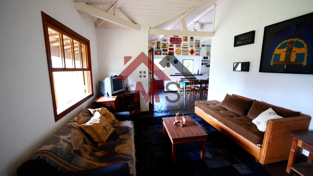 Casa sede: 3 quartos, sendo 1 suíte, 1 banheiro, sala de estar/TV, sala de jantar, cozinha, lavanderia em área coberta.