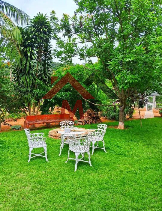 A chácara possui 1.900 m² de terreno, com diversos espaços planejados para conforto, convivência e produção.